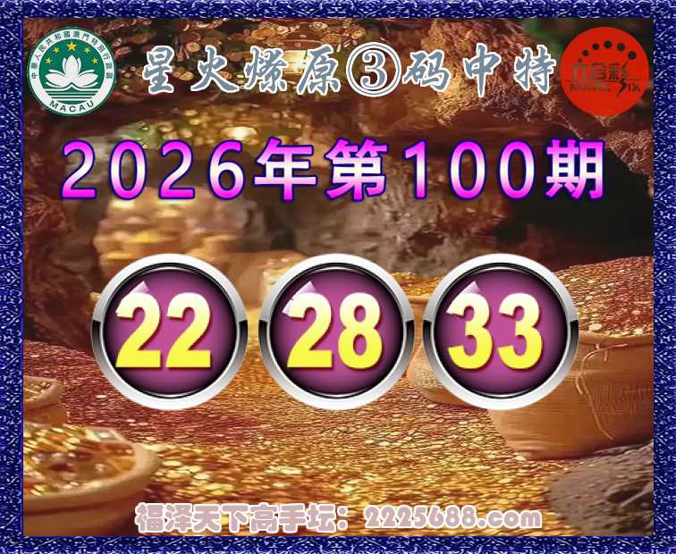 100期: 💄『星火燎原』 💄③码中特💄【22.28.33】开:33