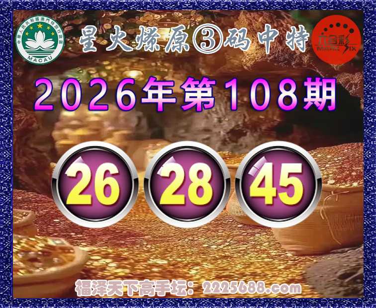 108期: 💄『星火燎原』 💄③码中特💄【26.28.45】开:45