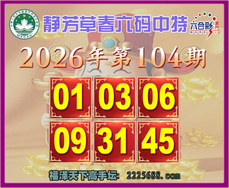 104期:【静芳草春】 😍六码中特😍【01.03.06.09.31.45】开:01