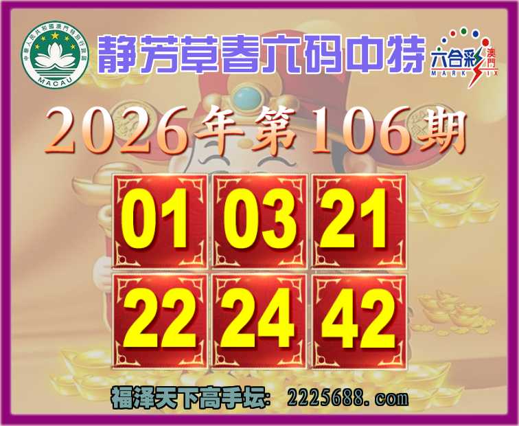 106期:【静芳草春】 😍六码中特😍【01.03.21.22.24.42】开:22