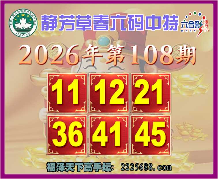 108期:【静芳草春】 😍六码中特😍【11.12.21.36.41.45】开:45
