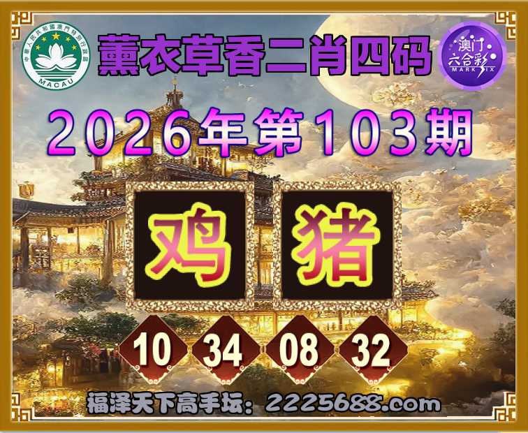 103期:『薰衣草香』 👛二肖四码👛【鸡猪】【10.34.08.32】开:牛06