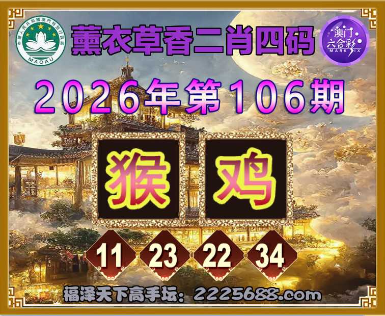 106期:『薰衣草香』 👛二肖四码👛【猴】【11.23.22.34】开:鸡22