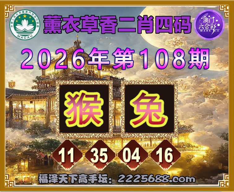 108期:『薰衣草香』 👛二肖四码👛【猴兔】【11.35.04.16】开:狗45