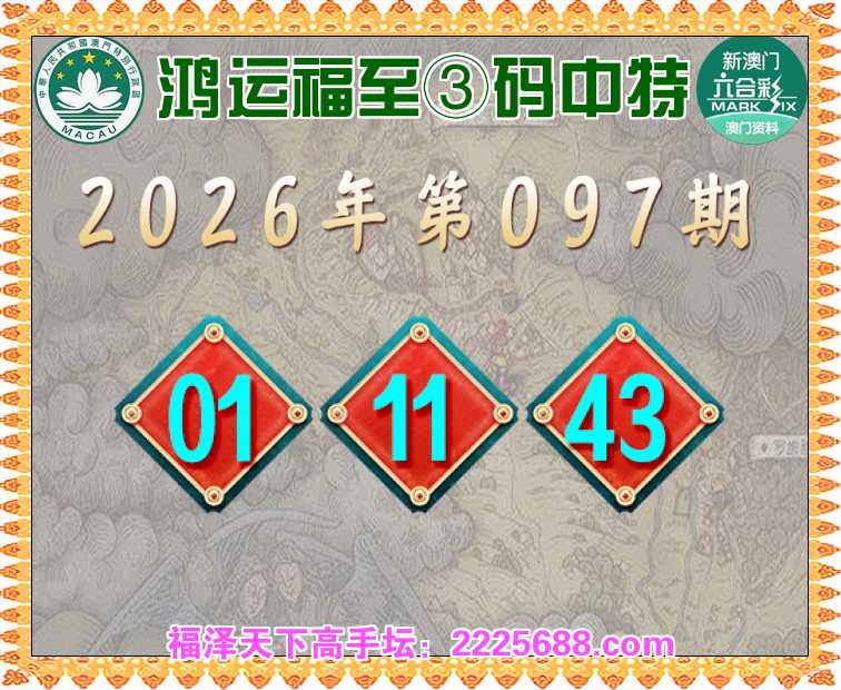 097期: 🥧『鸿运福至』 🥧③码中特🥧【01.11.43】开:11
