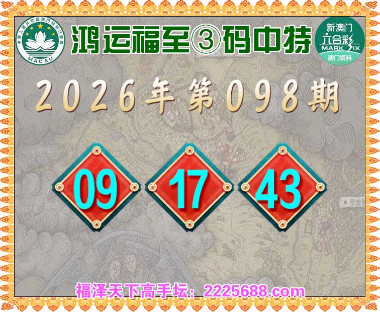 098期: 🥧『鸿运福至』 🥧③码中特🥧【09.17.43】开:17