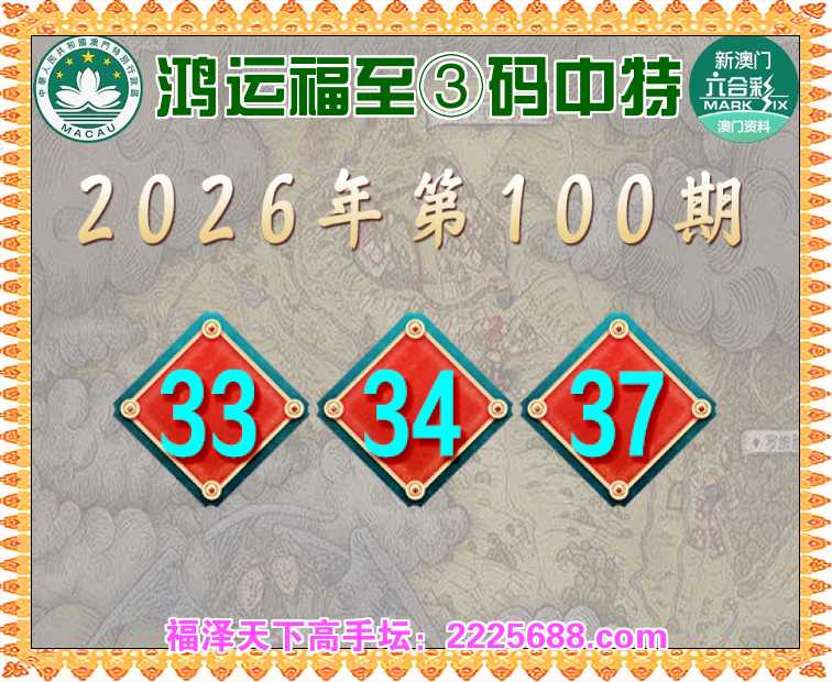 100期: 🥧『鸿运福至』 🥧③码中特🥧【33.34.37】开:33