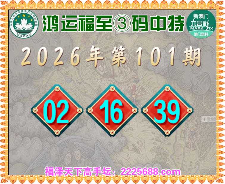 101期: 🥧『鸿运福至』 🥧③码中特🥧【02.16.39】开:39