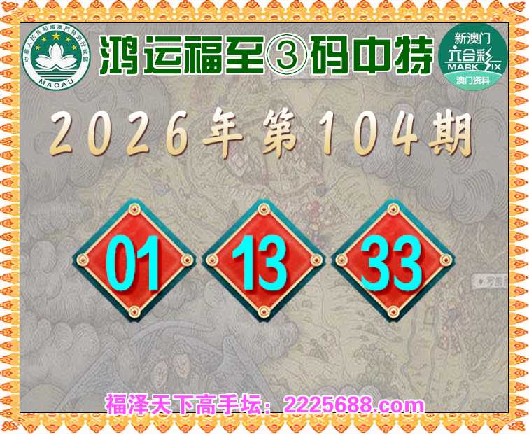 104期: 🥧『鸿运福至』 🥧③码中特🥧【01.13.33】开:01