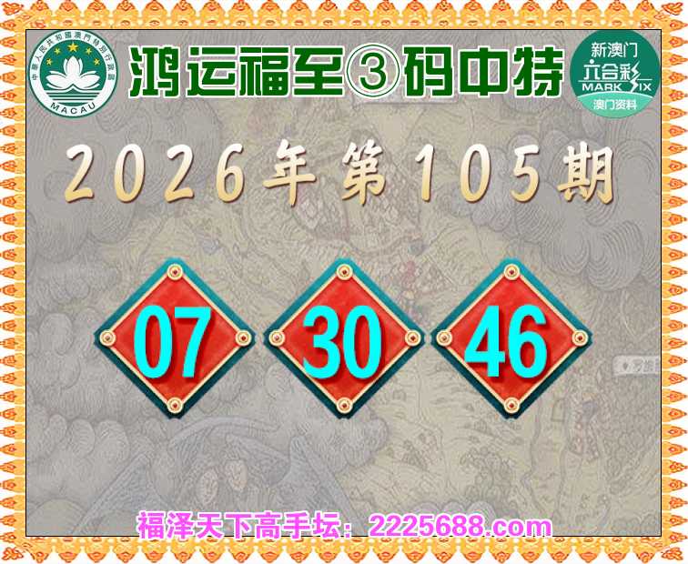 105期: 🥧『鸿运福至』 🥧③码中特🥧【07.30.46】开:28