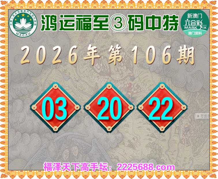 106期: 🥧『鸿运福至』 🥧③码中特🥧【03.20.22】开:22