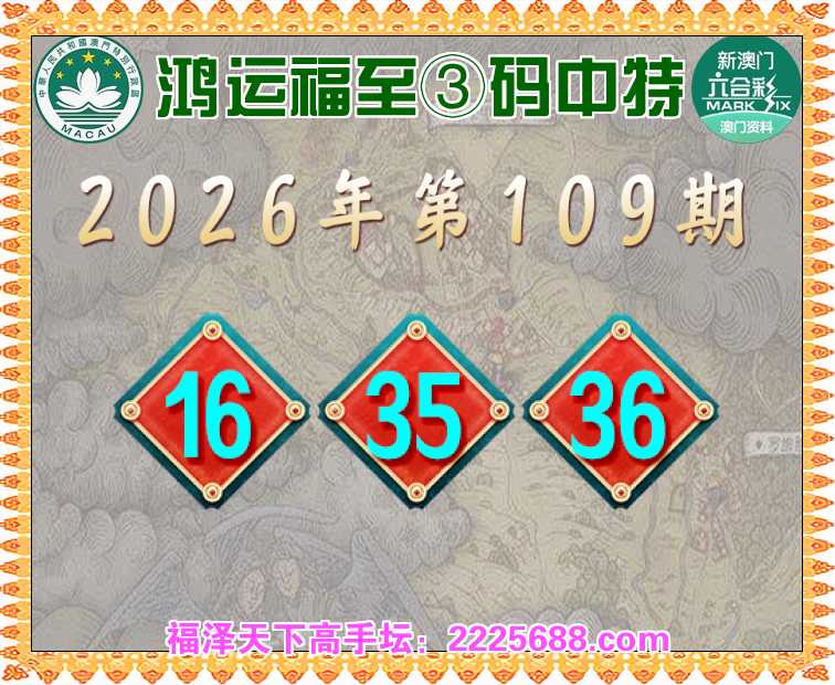 109期: 🥧『鸿运福至』 🥧③码中特🥧【16.35.36】开:16