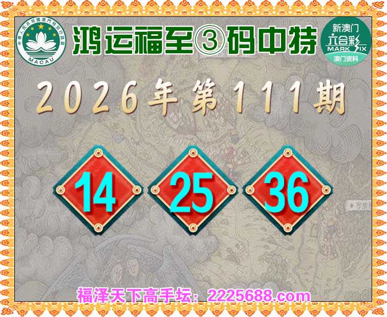 111期: 🥧『鸿运福至』 🥧③码中特🥧【14.25.36】开:00准