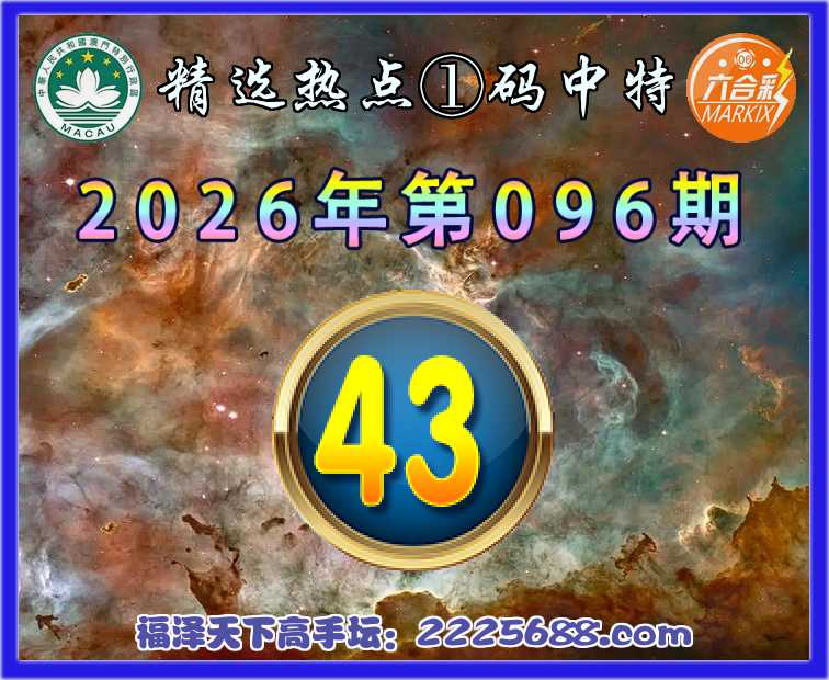 096期:『精选热点』 👑①码中特👑【43】开:43