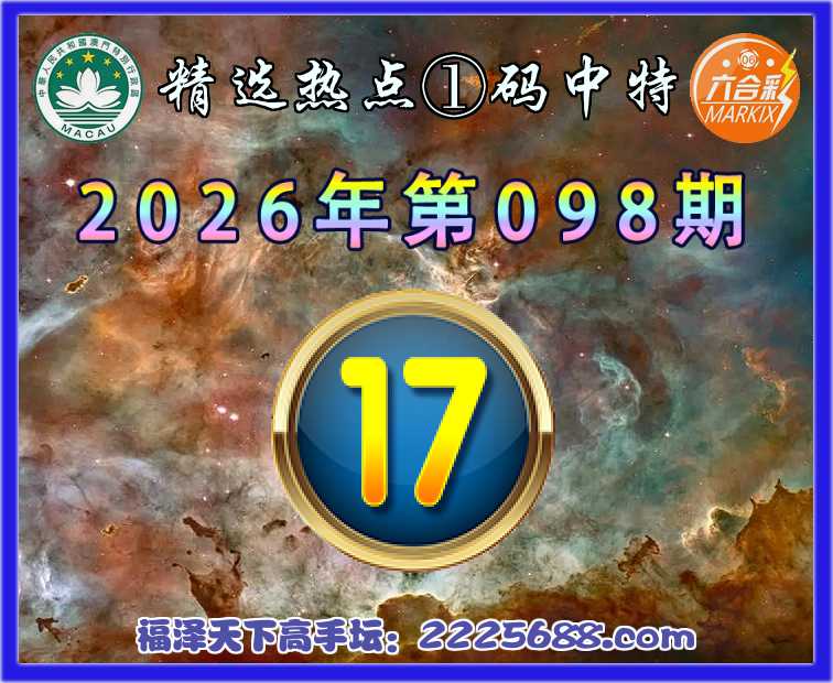 098期:『精选热点』 👑①码中特👑【17】开:17