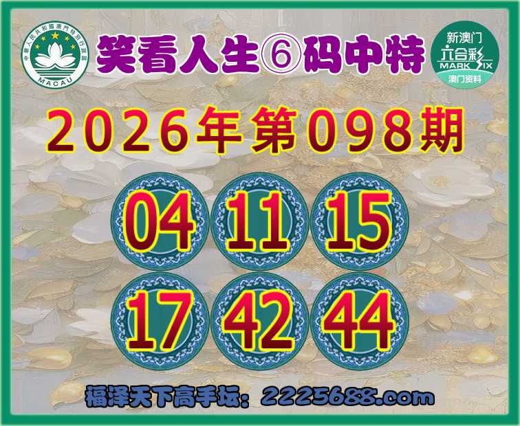 098期:『笑看人生』⑥码中特⚽【04.11.15.17.42.44】开:17