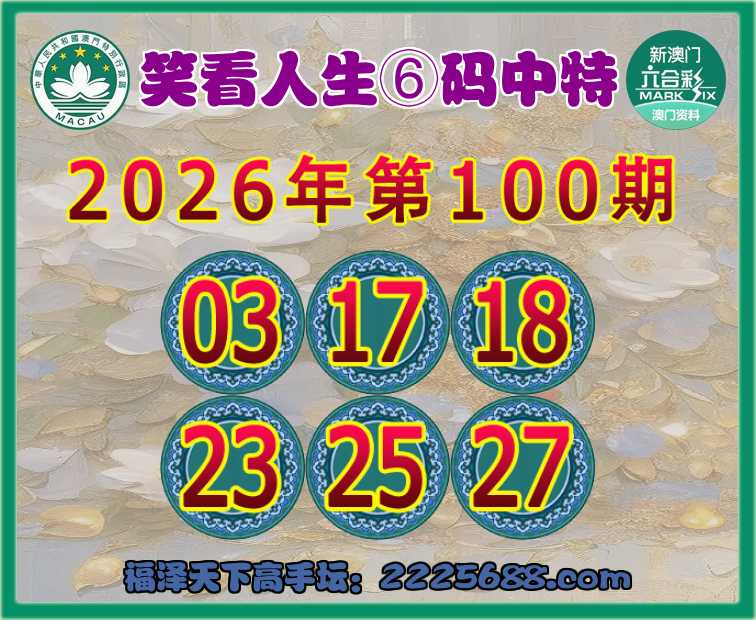 100期:『笑看人生』⑥码中特⚽【03.17.18.23.25.27】开:33