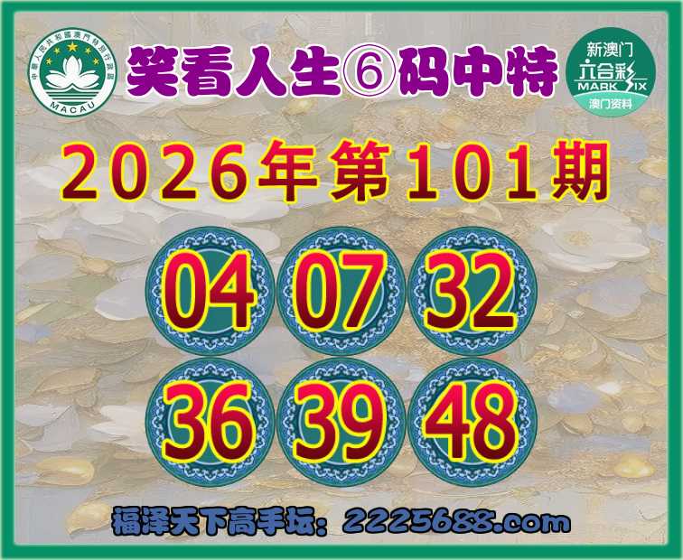 101期:『笑看人生』⑥码中特⚽【04.07.32.36.39.48】开:39