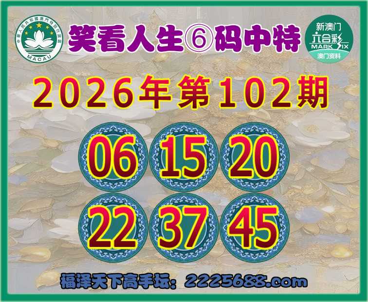 102期:『笑看人生』⑥码中特⚽【06.15.20.22.37.45】开:20