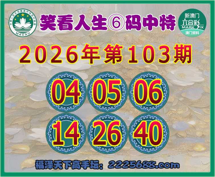 103期:『笑看人生』⑥码中特⚽【04.05.06.14.26.40】开:06