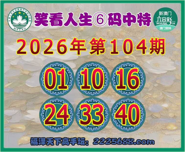 104期:『笑看人生』⑥码中特⚽【01.10.16.24.33.40】开:01