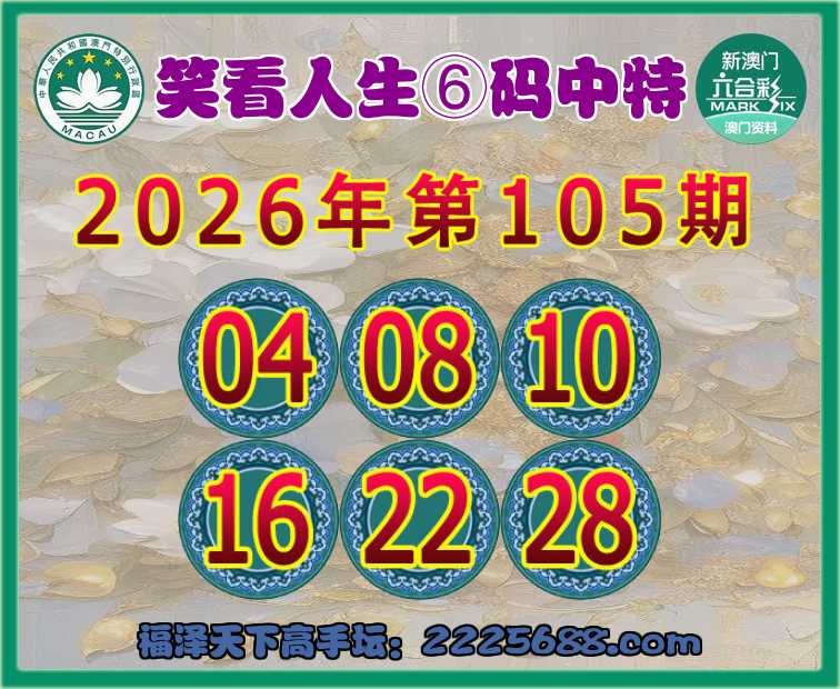 105期:『笑看人生』⑥码中特⚽【04.08.10.16.22.28】开:28