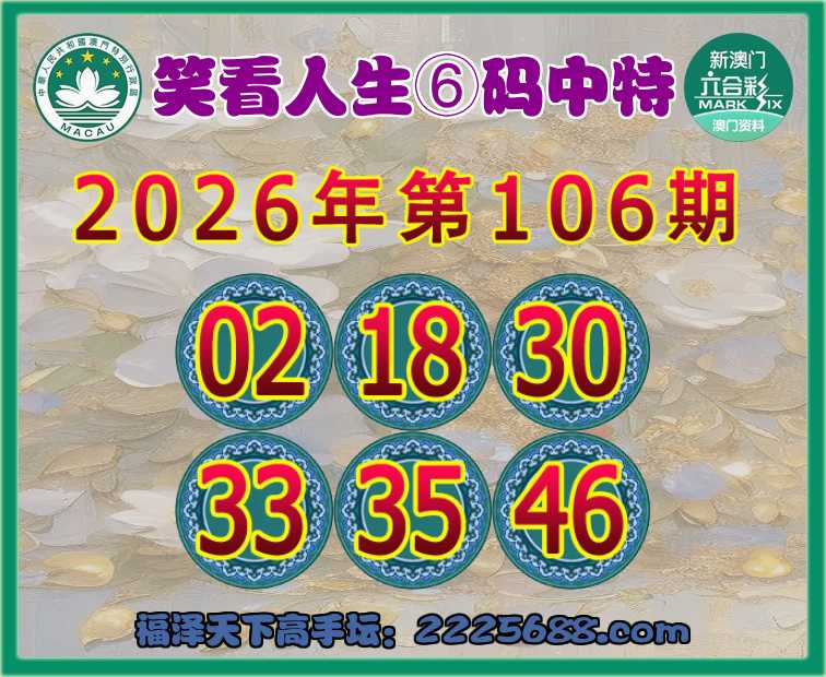 106期:『笑看人生』⑥码中特⚽【02.18.30.33.35.46】开:22