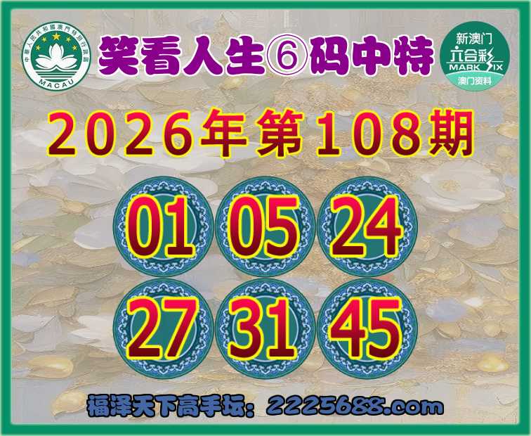 108期:『笑看人生』⑥码中特⚽【01.05.24.27.31.45】开:45