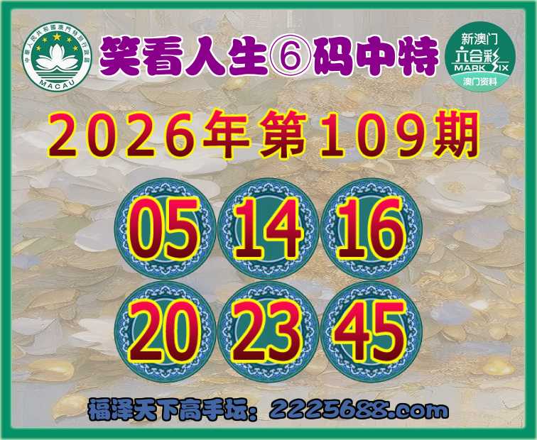 109期:『笑看人生』⑥码中特⚽【05.14.16.20.23.45】开:16