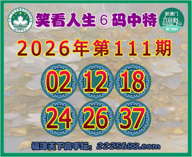111期:『笑看人生』⑥码中特⚽【02.12.18.24.26.37】开:00准